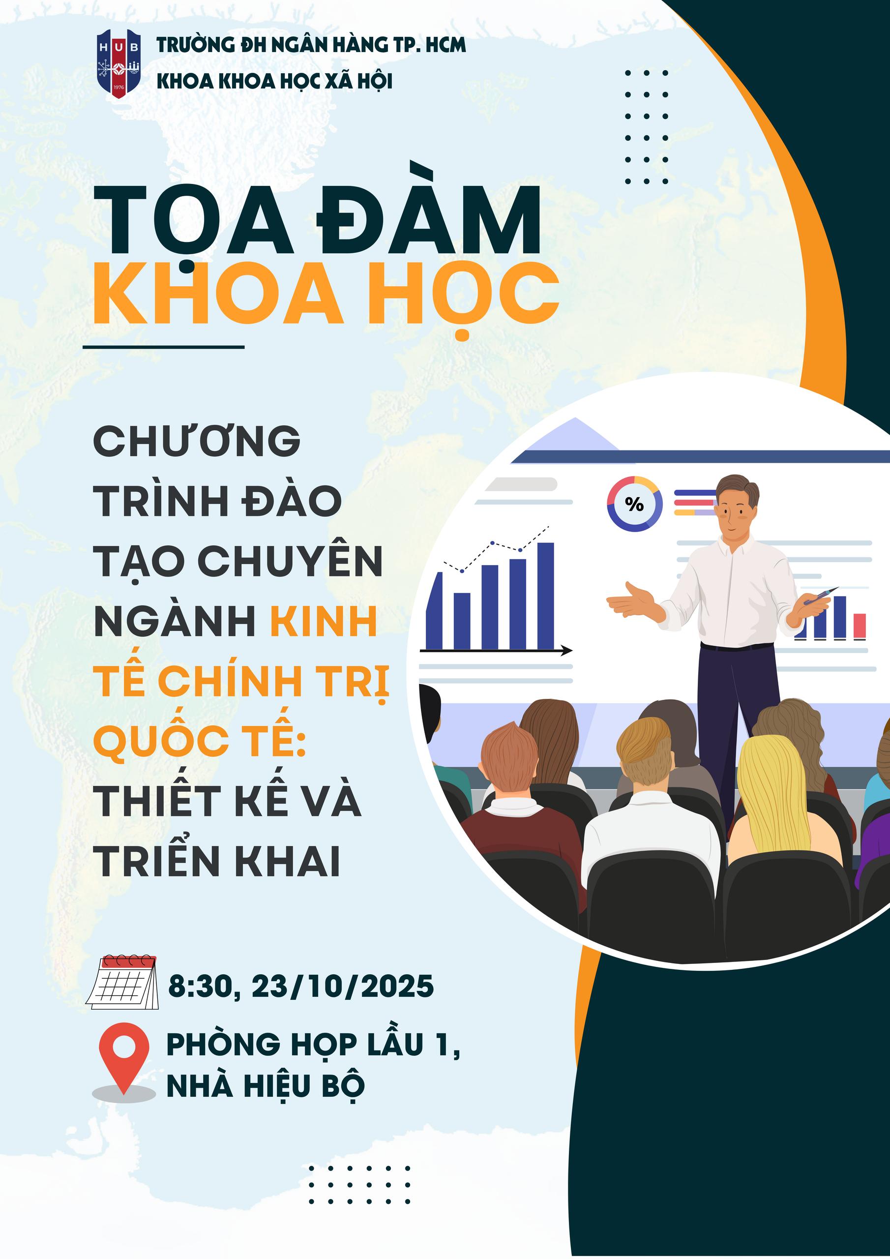 Buổi tọa đàm nhằm trao đổi, thảo luận và góp ý cho kế hoạch xây dựng – triển khai chương trình đào tạo chuyên ngành Kinh tế Chính trị Quốc tế tại Trường Đại học Ngân hàng TP. HCM. Đây là dịp để giảng viên, chuyên gia và sinh viên cùng chia sẻ góc nhìn, đóng góp ý kiến nhằm hoàn thiện chương trình theo hướng hiện đại, hội nhập quốc tế.